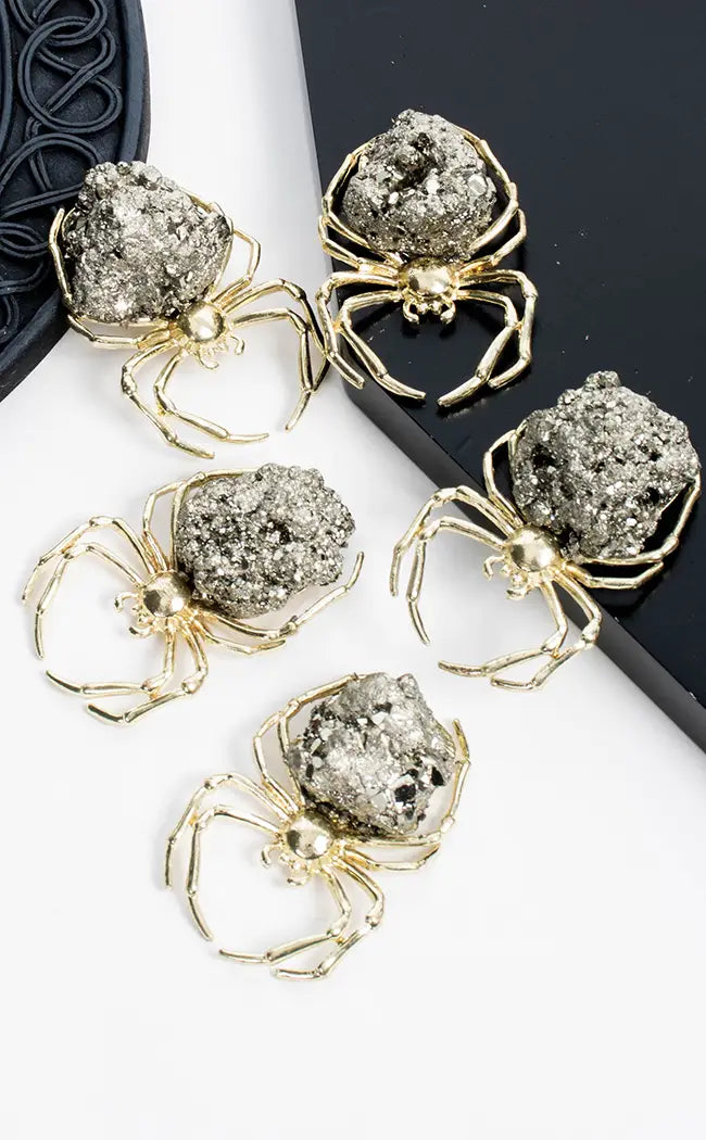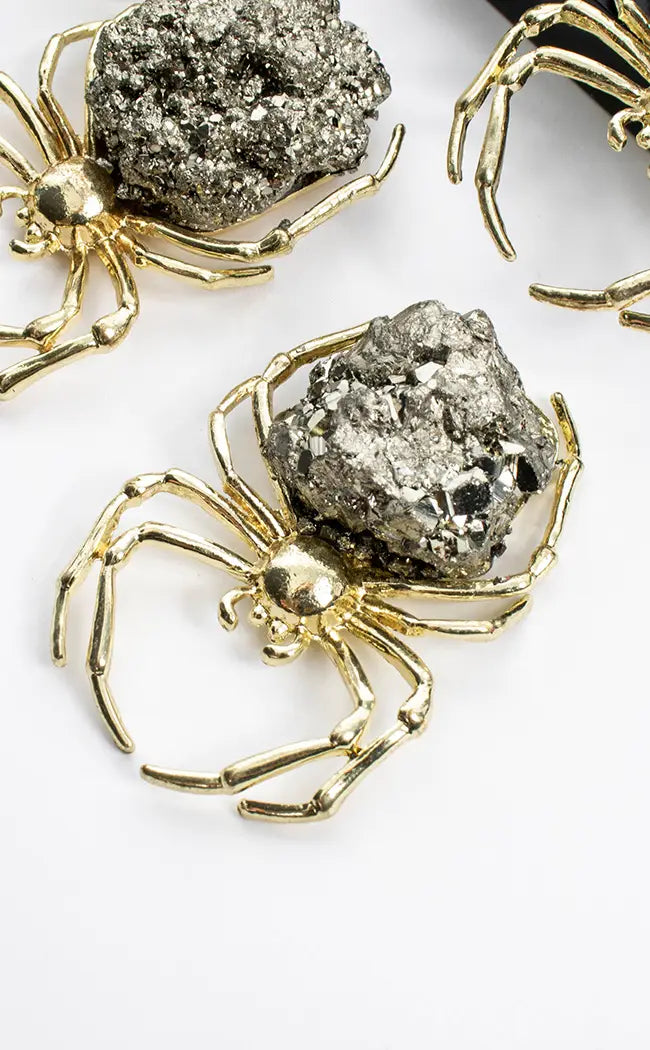 Add to your crystal collection with one of our macabre, glittering crystal spiders. These beautiful crystals feature luminous pyrite clusters attached to a spider's body, and will make a stunning and unique addition to any home or altar. These spiders are made from Pyrite.