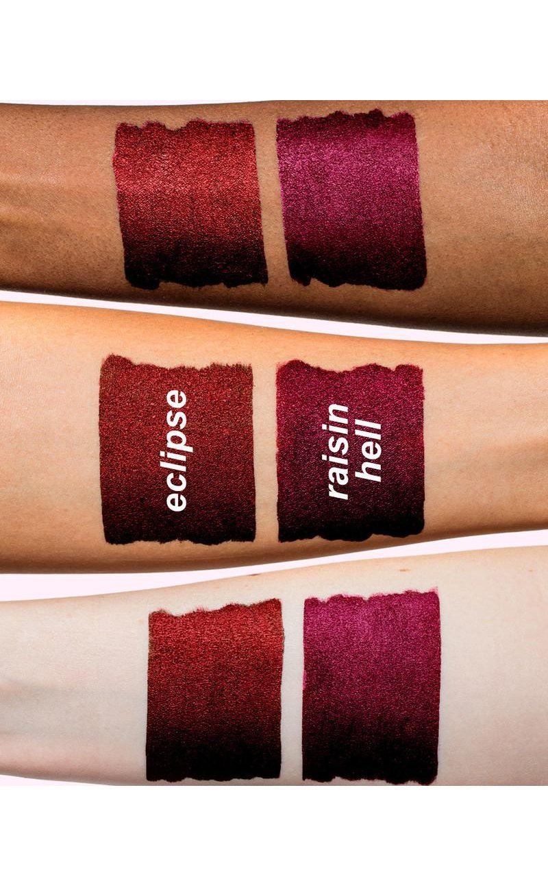 Raisin Hell is a luscious blackberry liquid lipstick with an awesome liquid metal finish. These lipsticks LAST! Once dry no smudging, just perfect lips.