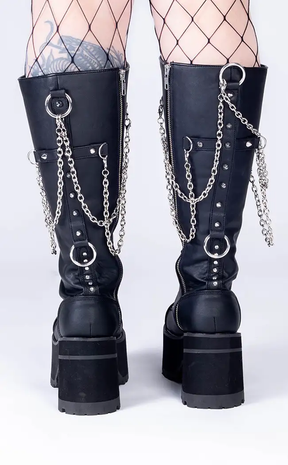 RANGER-303 Black Vegan Leather Platform Knee High Boots