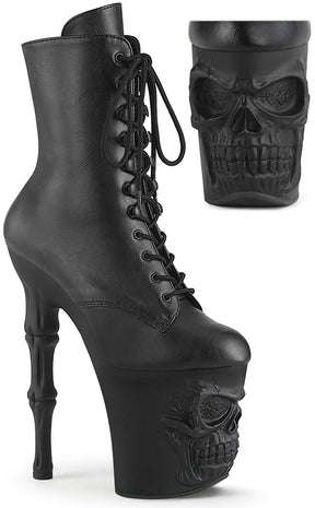 RAPTURE-1020 Black Vegan Leather Skull Boots