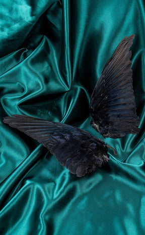 These are real Carrion Crow (Corvus Corone) / English Black Crow wings. They are beautiful pieces ready for taxidermy art, displaying, or as a smudge fan.
