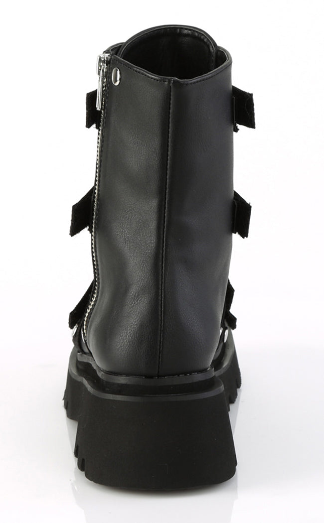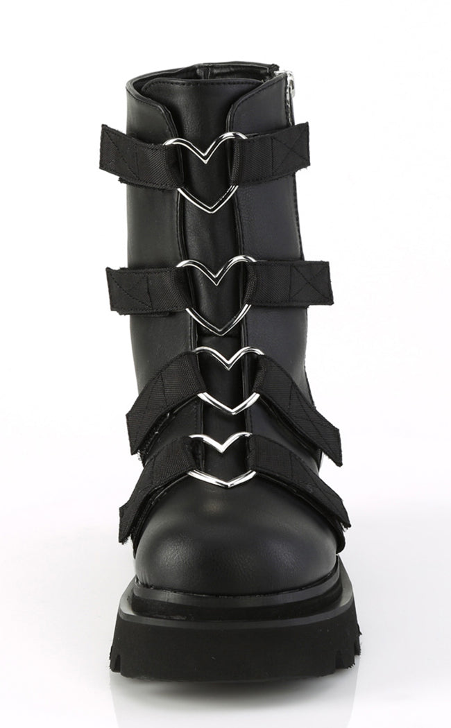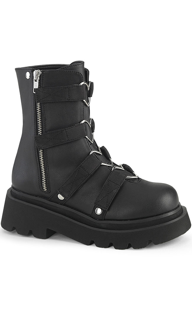 For the rebels and the renegades, the RENEGADE-55 boots are where it's at! These ankle boots secure with a side zip and feature heart rings secured by nylon straps for the badasses with a heart of gold.