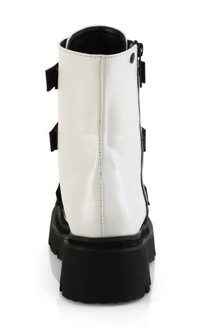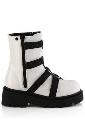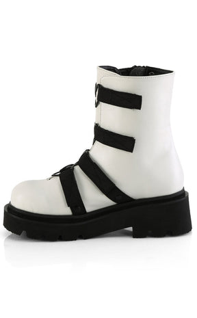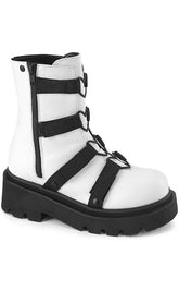 For the rebels and the renegades, the RENEGADE-55 boots are where it's at! These ankle boots secure with a side zip and feature heart rings secured by nylon straps for the badasses with a heart of gold.
