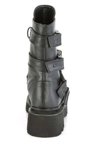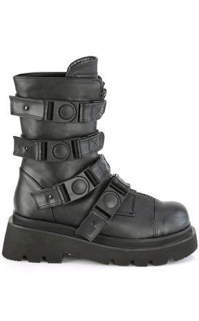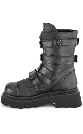 RENEGADE-55 Black Vegan Leather Combat Ankle Boots