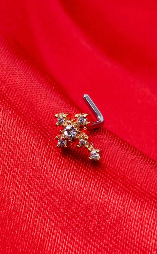 Exquisitely forged from surgical steel, these elegant nose studs are formed in the silhouette of a cross, and boast a palette of beautiful hues.
