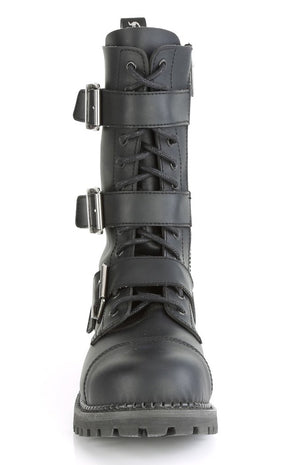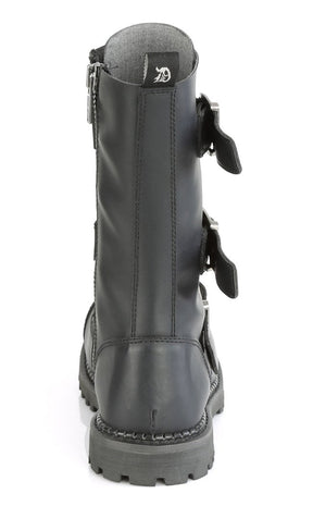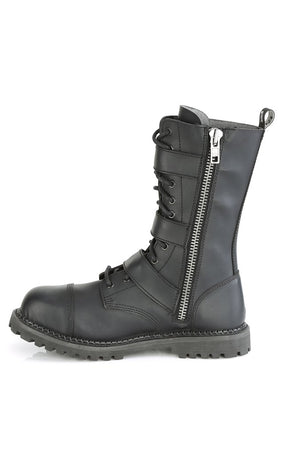 RIOT-12BK Black Vegan Leather Combat Ankle Boots