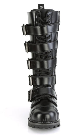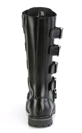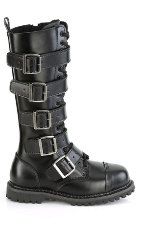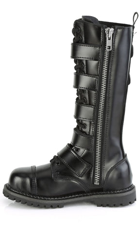 RIOT-18BK Black Leather Knee High Combat Boots