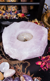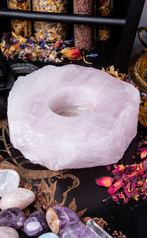 These beautiful candle holders were carved from rose quartz, featuring a polished surface and rough sides to showcase the natural beauty of this stone. Each holder fits a standard-sized tealight candle to add a loving aura to your altar or any room in your home.