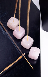 This Rose Quartz incense holder facilitates a calming environment, promoting understanding and an atmosphere of acceptance. A small hole in the top of the crystal allows for an incense stick to be secured in place. Incense sticks can be used to improve concentration, alleviate tension, and assist with rest, while providing a calming aroma. The use of incense in combination with crystals has been associated with meditative practices, providing an atmosphere of relaxation and spiritual growth.