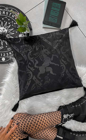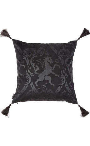Get cosy n' classy with the Royal Beast Cushion Cover. Soft, velour fabric is printed with a statement baroque beast motif and trimmed with tassel corners, securing with an inner zip. The perfect throw pillow to dress up yer lounge, bed or lions lair!