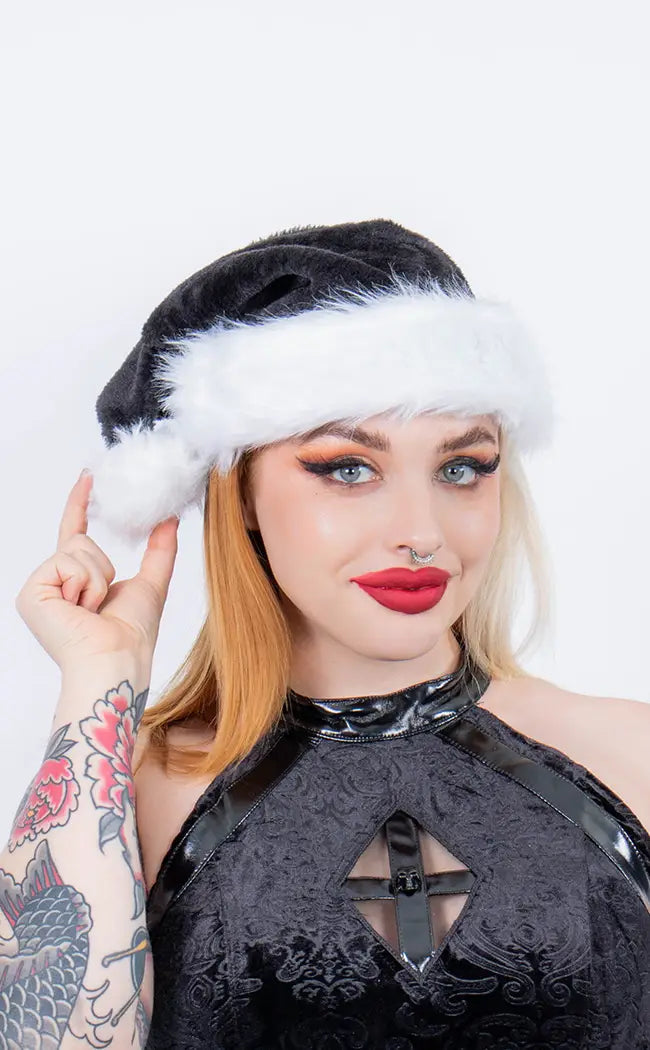 Who says goths can't be festive? Summon the holiday spirits this Hexmas with this Santa Gothmas Hat! It is made from super soft material and is the perfect way to spread holiday cheer without losing yer edge.