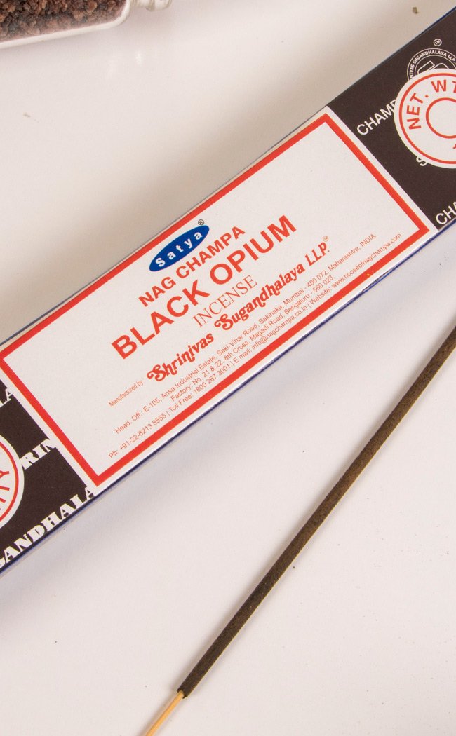 Satya's Black Opium incense is an intoxicating and sensual blend with smoky overtones. This incense helps to focus the mind and block out negative energy, making it an ideal preparation for lucid dreaming and psychic rituals.
