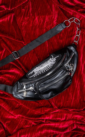 This Scolopendra Crossbody Bag features a centipede design on the front, enhanced with creepy crawly metal charm details. This bag has a spacious interior and plenty of room for your smartphone, wallet, keys, and other essentials!