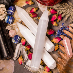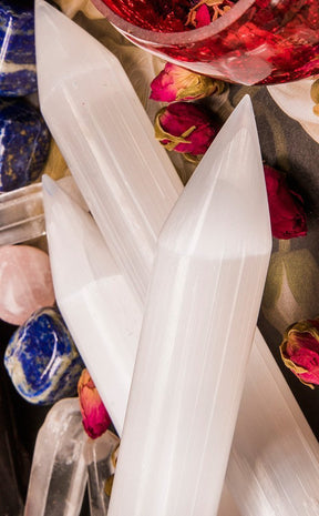 Selenite lends to reconciliation and energy to the body. It has cleansing effects and removes negative influences of all kinds. Psychologically, it assists judgment and insight. Selenite is a calm stone that instills deep peace and is excellent for meditation or spiritual work. An ancient stone, it is nevertheless one of the most powerful crystals.