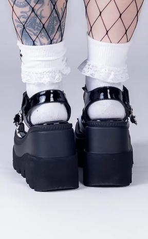 Shake it up with these glammed up wedges! The SHAKER-13 wedges are chunky punk sandals with studded straps and cute gothic details like a spider heart buckled and a detachable Demonia "D" charm. Dress up or down for summer!