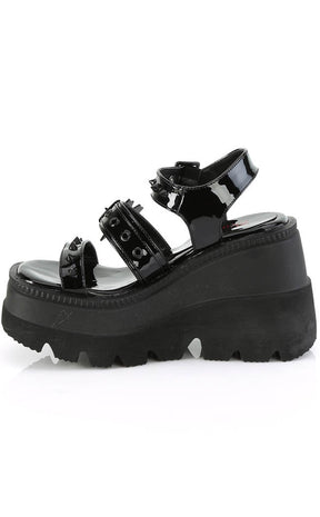 SHAKER-13 Black Patent Wedge Sandals (AU Stock)