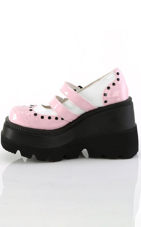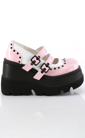 SHAKER-27 Baby Pink/White Patent Platform Mary Janes