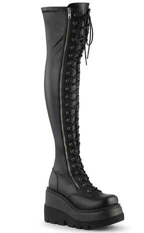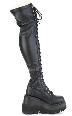 SHAKER-374 Black Vegan Leather Thigh High Platform Boots (Au Stock)