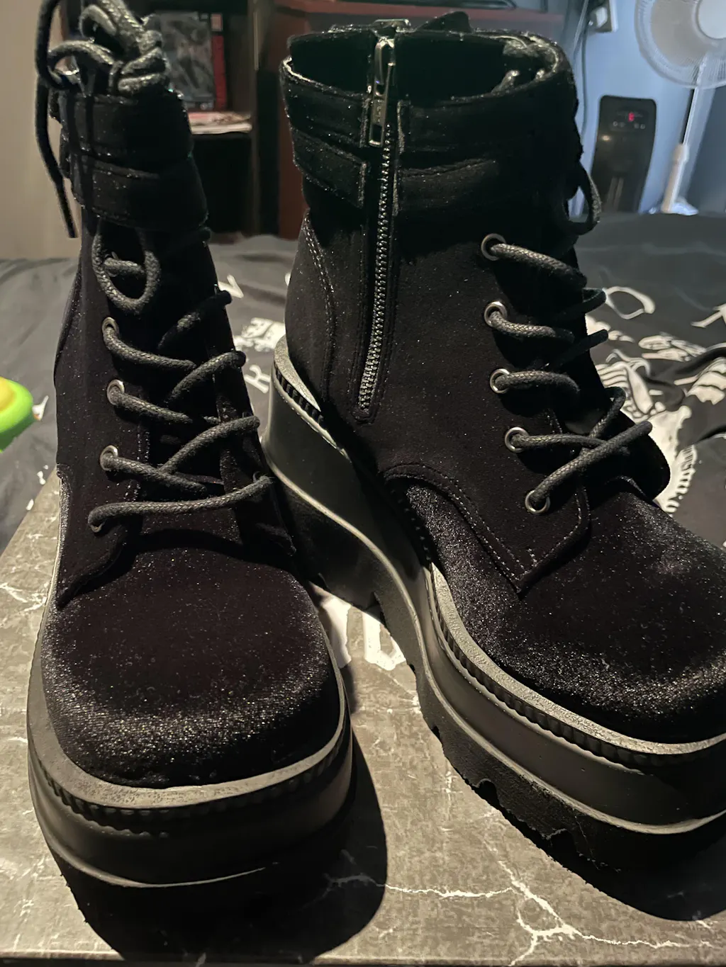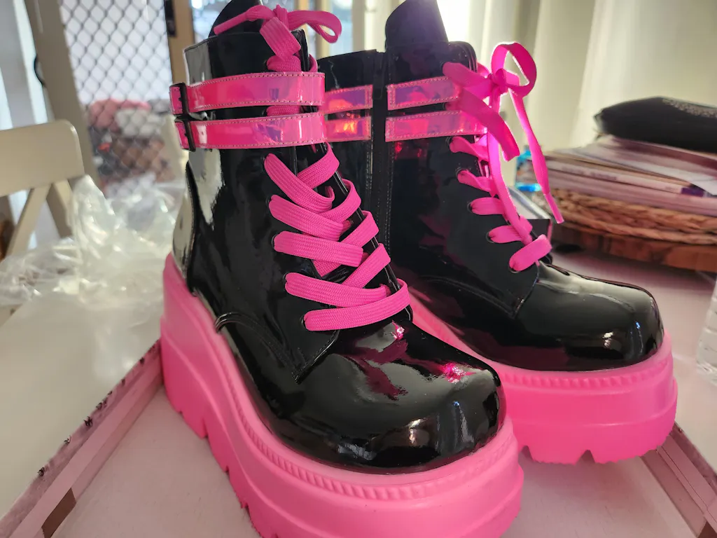 SHAKER-52 Black Patent & UV Green Platform Ankle Boots