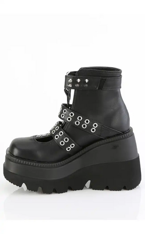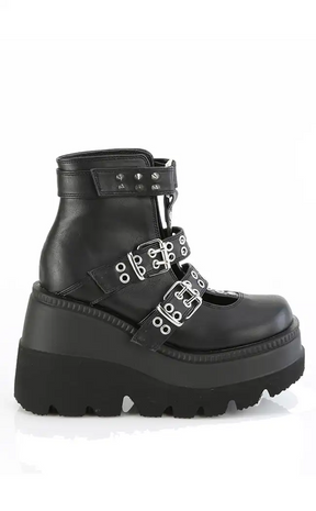 Step out in style with the Demonia Shaker-62 ankle boots, the ultimate addition to any edgy and daring wardrobe. These black matte ankle boots are made from high-quality vegan leather, making them both stylish and cruelty-free.