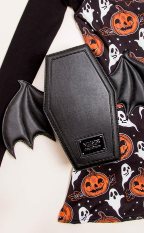 Pack up for a tooth-rotting adventure with this batty statement piece! The main compartment unzips to reveal plenty of space with classic lining. Two dramatic bat wings spread out from the sides so you can slip this baby on and fly the day away.