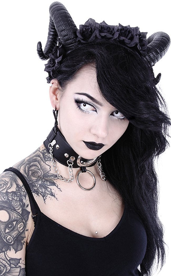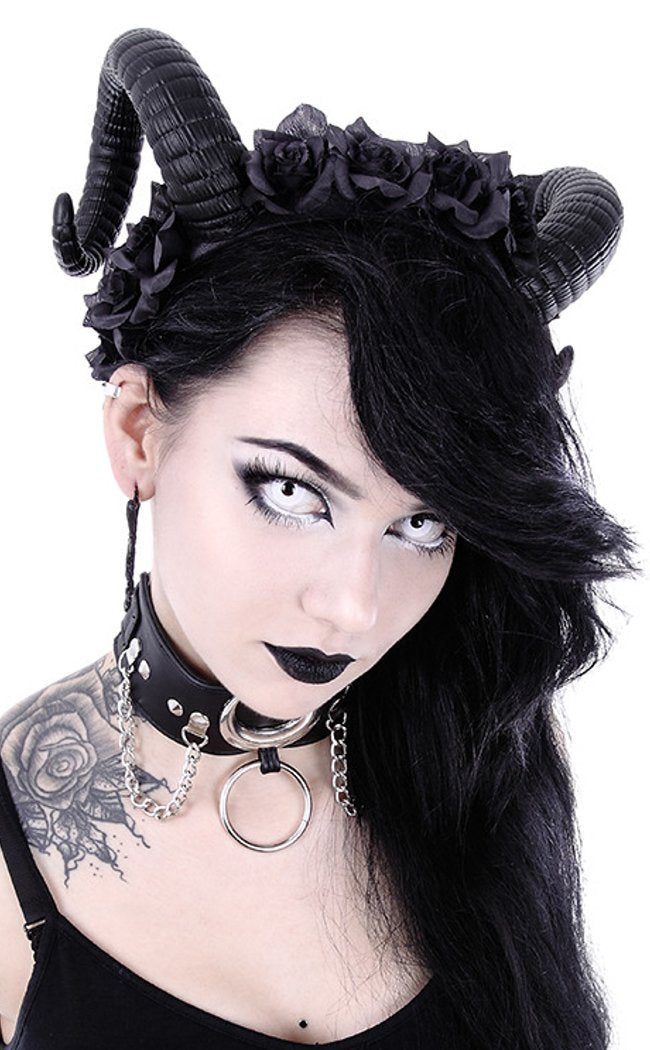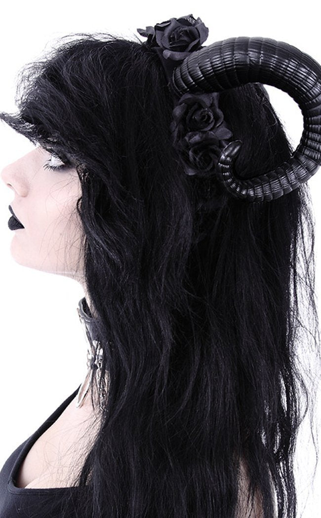 Gothic headpiece with gorgeous demonic horns and 12 stunning black roses.