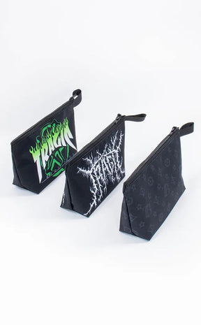 Carry yer pens and cosmetics in dark flair with this Sk8er Grl Pencil Case/Makeup Bag! Whether you’re prepping for yer demonology class or doing a touch-up for a night out, this bag has got you covered.