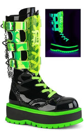 SLACKER-156 Black Patent & UV Green Platform Boots