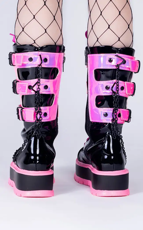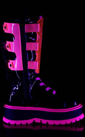 SLACKER-156 Black Patent & UV Pink Platform Boots