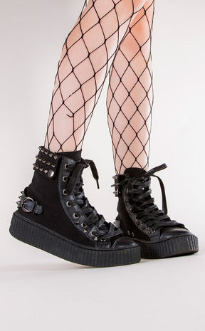 SNEEKER-266 Black Canvas Creeper Sneakers (AU Stock)