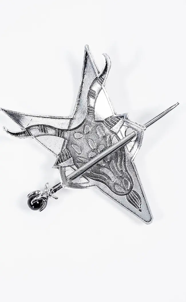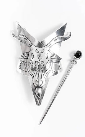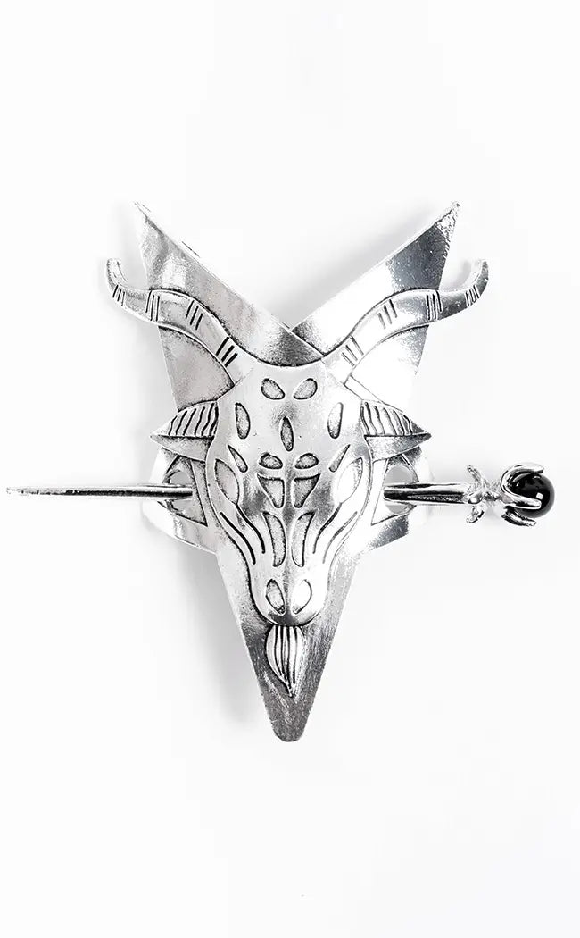 Show your devilish side with this little devil by your side. Featuring Baphomet holding your locks in place, this hairpin is an offbeat way to keep your hair looking fierce!