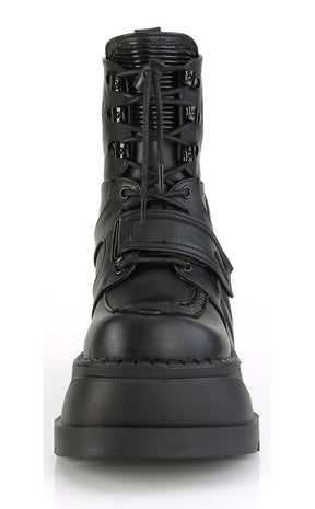 STOMP-13 Black Vegan Leather Platform Ankle Boots