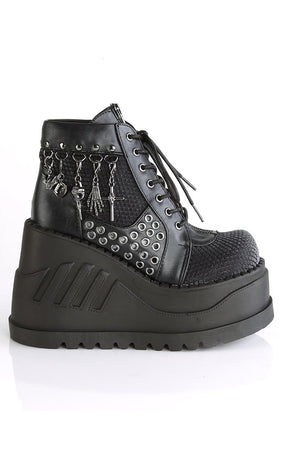 STOMP-18 Black Vegan Leather Platform Ankle Boots