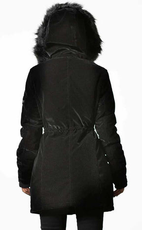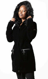 Battle even the iciest winds in the Stormy Daze Parka Jacket! Soft-touch velvet keeps you looking chic on the outer while the lining keeps you extra toasty. The faux fur hood and cross zip charms add a touch of glam to this practical yet chic jacket.