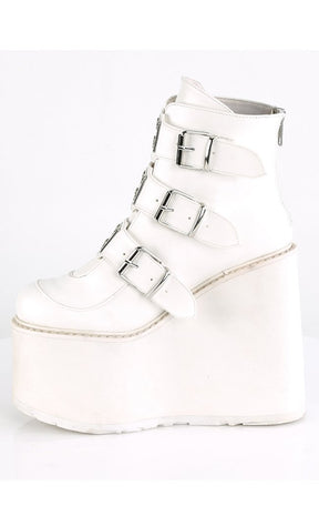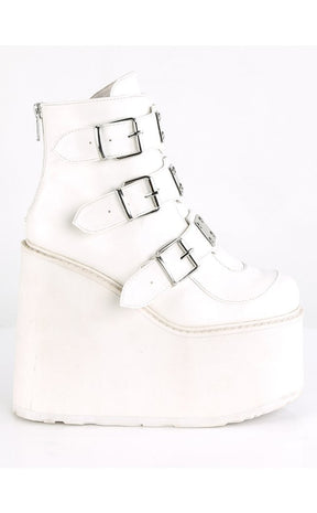 SWING-105 White Vegan Leather Platform Ankle Boots