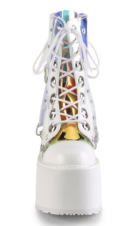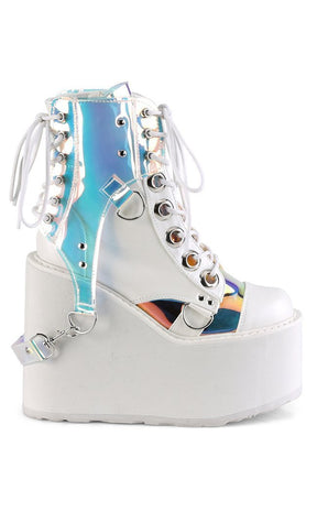 Swing your way into the club with this series of platform wedged boots and shoes, with buckles and straps and decals galore!