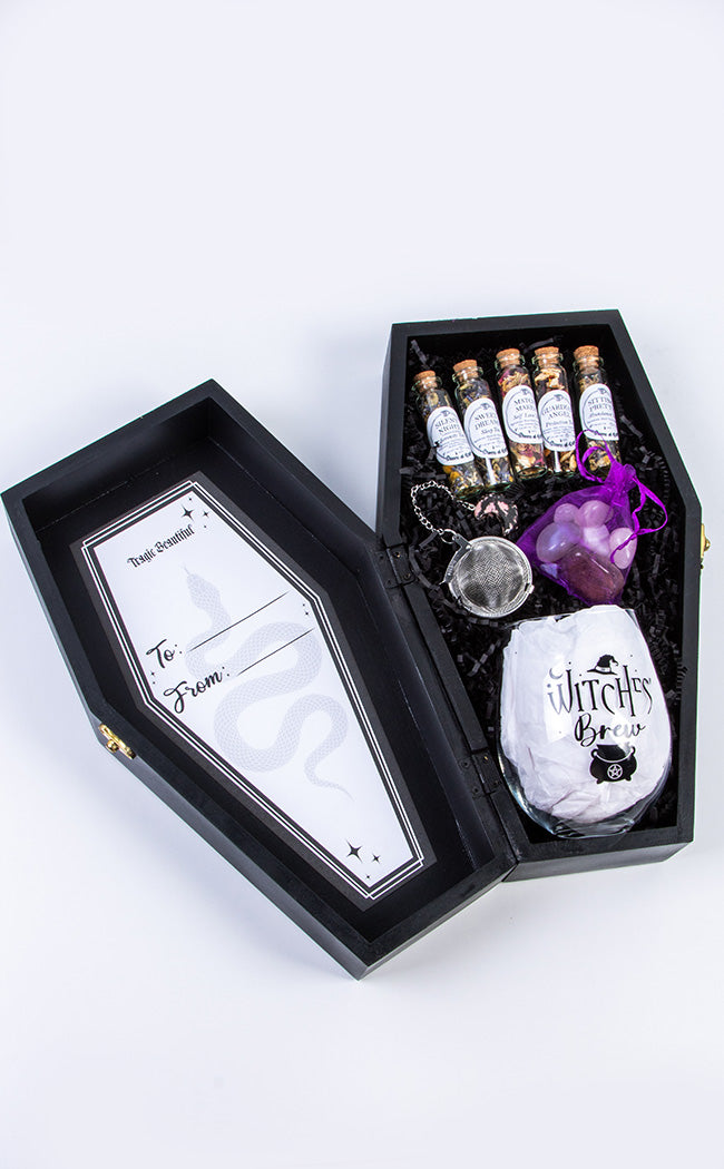 We've also included a suitable Witches Brew stemless glass for your teas, and a scoop of your best-selling crystal confetti, scooped with intention just for your gift pack! Feel free to leave us a message in your order notes with the name of the person the gift is for, and we will think about them while we scoop the crystals.