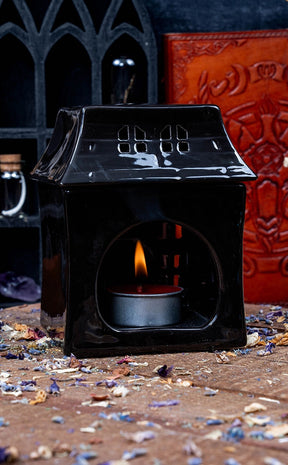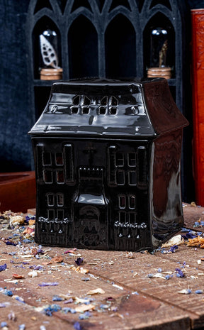 Burn your oils & melts in gothic style with this sturdy black ceramic oil burner styled into a gothic mansion