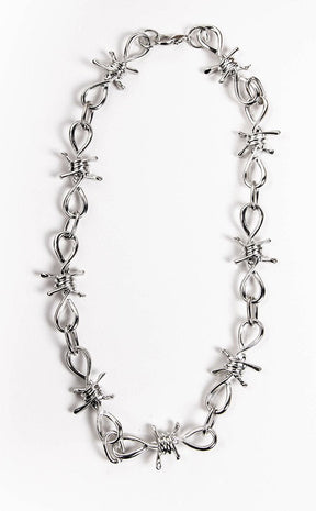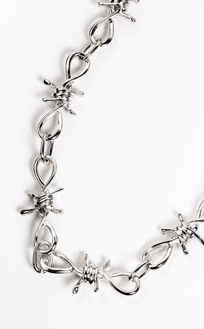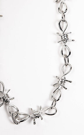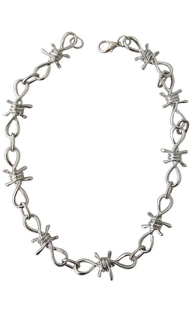 The Thorn Neckchain is a badass choker made of chunky barbed wire links with a silver finish.