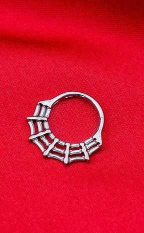 Silver clicker rings with a spiderweb design. Made with ASTM F136 implant-grade titanium - the absolute best quality you can get for your piercings.