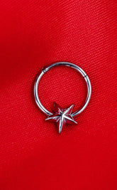 This septum ring comes in silver and showcases a delicate ring with a star.
