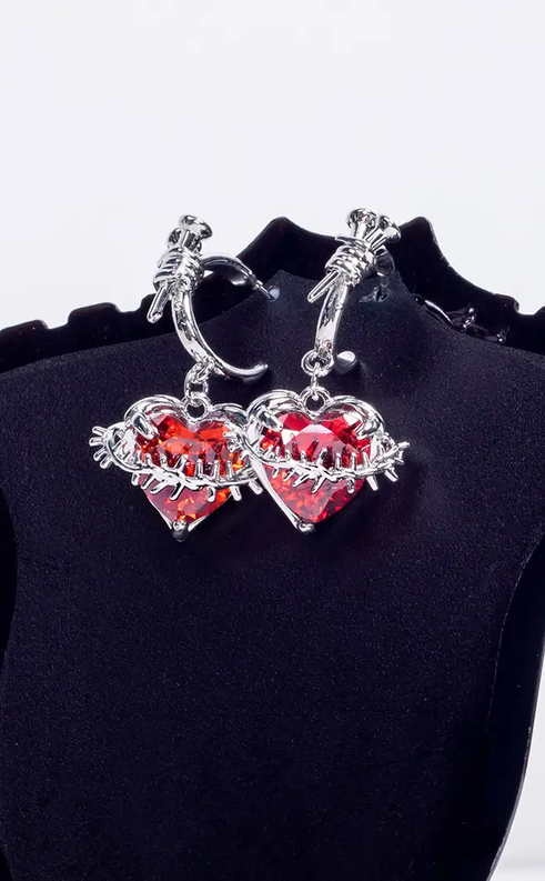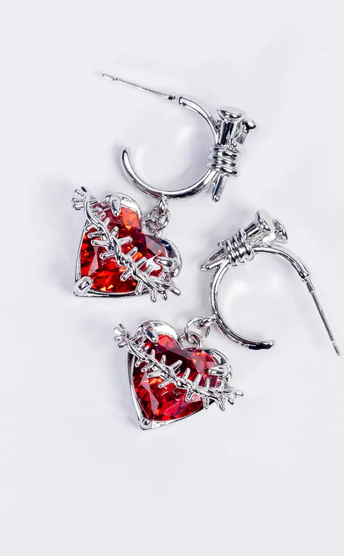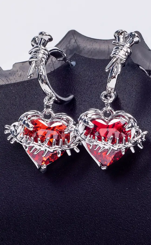 Our Tough As Nails earrings will let the world know that your heart is off-limits! With menacing thorns surrounding it, no one is getting in - you can trust it's guarded safe and sound. A pair of nails sits atop these earrings, striving to impale the heart below.