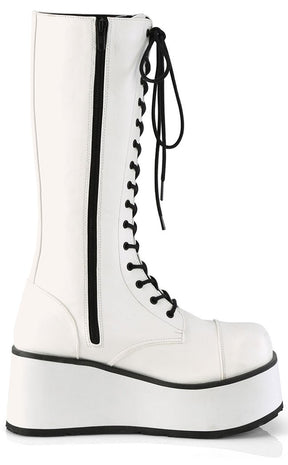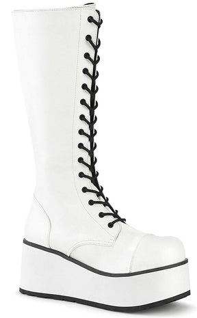 TRASHVILLE-502 White Vegan Leather Platform Boots