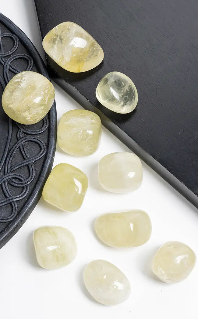 Quartz is said to help structure, focus and amplify thoughts and information. It is also thought to transmit energy. Because the colour yellow is associated with clarity, communication and happiness, lemon quartz is believed to help balance and strengthen these aspects.