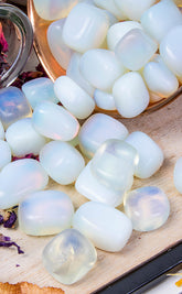 Opalite is a beautiful, sky blue stone that symbolizes clear thinking, new beginnings, and childlike glee. Opalite is a man-made stone. It symbolizes clear thinking and new beginnings. Opalite thrives to improve communication on all levels, especially spiritual. It also helps to remove blockages of the chakras and meridians.