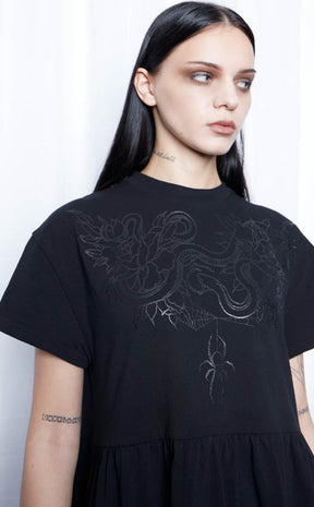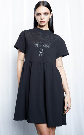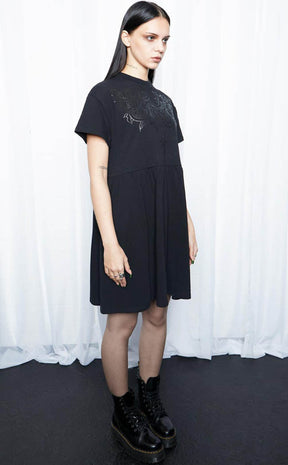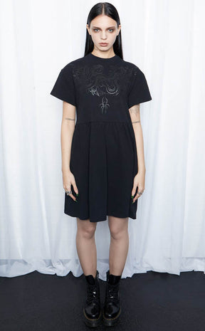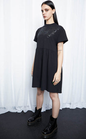 Get creepy cute in the Underworld Organic Smock Dress! The oversized babydoll silhouette is incredibly flattering, with a high crew neckline and gently gathered waist. The jersey fabric is super soft and comfortable for easy casual looks that you can accessorise to hell and back.
