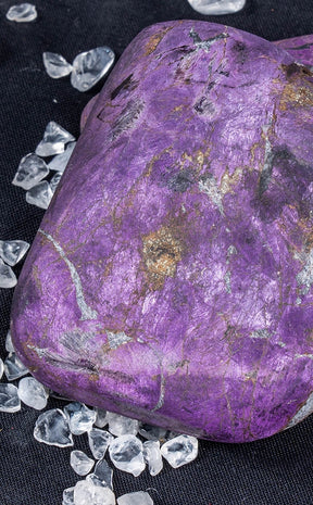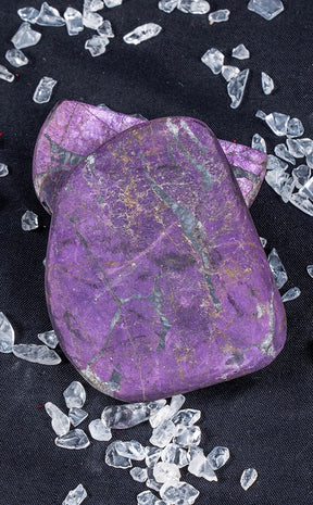 Purpurite can be an advantageous aid in developing an affinity to superior vibrations, in addition to bridging the third eye and crown chakra. These crystals are believed to harmonize your mental and emotional sides with your truest spiritual self. It can also help you harness stronger intuition and communication with higher beings, who can provide wisdom on your spiritual path. Purpurite is said to be an extremely effective stone for psychic protection. Excellent for public speaking, Purpurite imparts clarity, focus and confidence to your thoughts and communication.