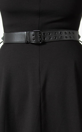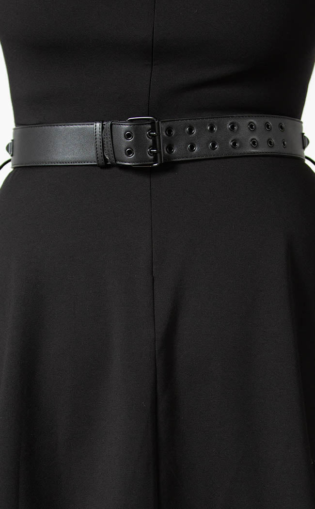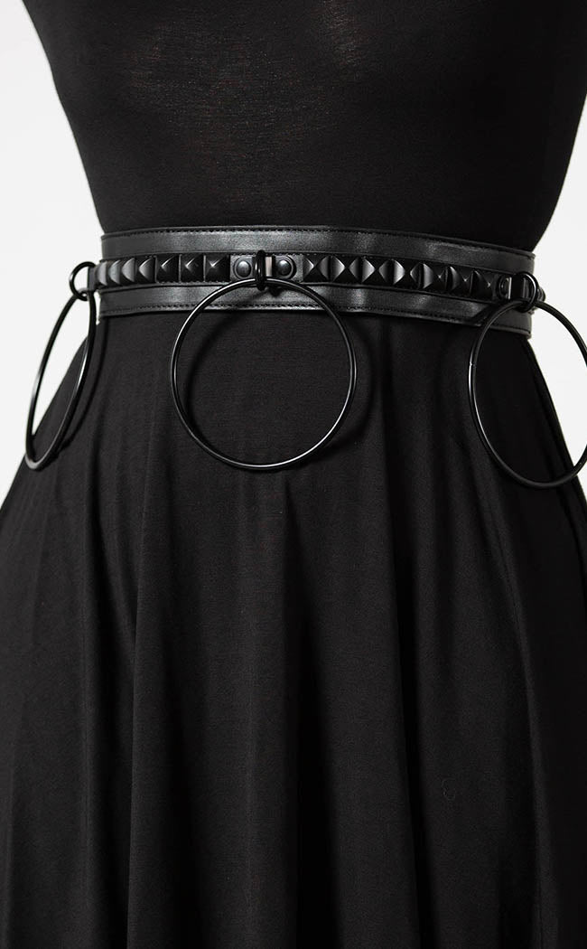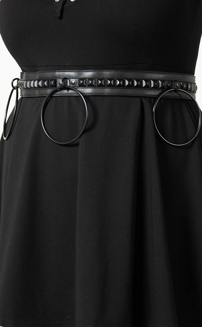 Freak em out just a little in the Vicious Studded Belt! This punk af outfit finisher comes with 3 huge O rings sitting on a line of black pyramid studs, all set on a band of black vegan leather.