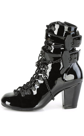 The Vivika 128 is a Victorian industrial gothic-inspired ankle length lace-up boot. Perfect with anything from ballgowns to skinny jeans.