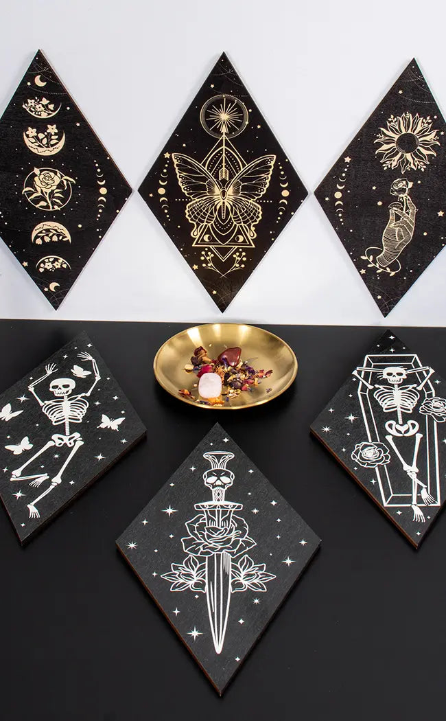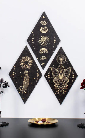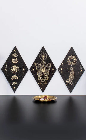 This trio of wall art is a total treat for any forest witch. Featuring a stunning butterfly, a scattering of flowers and alluring moon phases, it is perfect for adding an enchanting touch to any room or sacred space.
